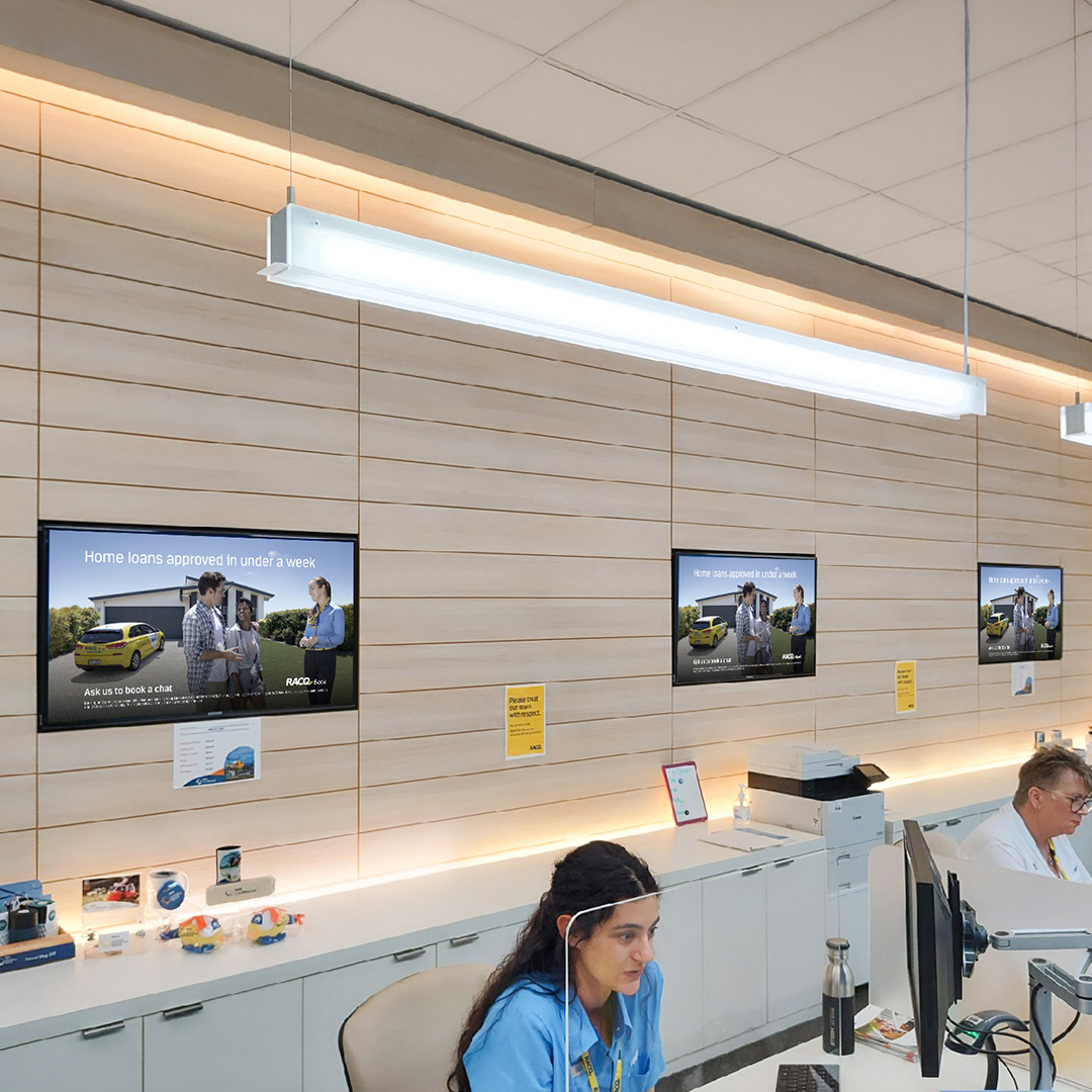 RACQ approached JDS for our expertise in large rollouts to their newly rebranded outlets throughout Queensland. JDS’s solution was to use commercial-grade digital signage media players with installed cloud-based software to match their Commercial-grade 4K panels.